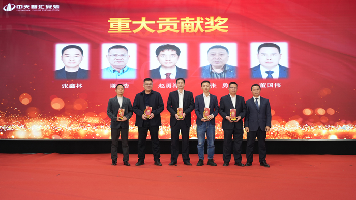 成績的取得離不開廣大中天同仁的辛勤付出,表彰會上,“優秀班組長”、“優秀員工”、“優秀黨員”、“貢獻獎”、“重大貢獻獎”、“AAA級信用項目經理獎”等10項先進個人獎和先進黨支部、先進單位、安全生產獎、工程質量獎、技術進步獎等10項團體獎先后頒發,獲獎代表也做了精彩發言,獲得陣陣掌聲。集團領導、公司經營班子、公司董監事及股東等先后上臺為先進頒獎。