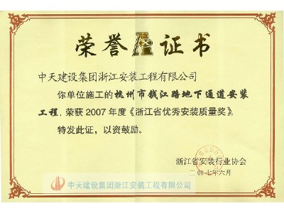 杭州市錢江路地下通道工程 2007年度浙江省“安裝杯”